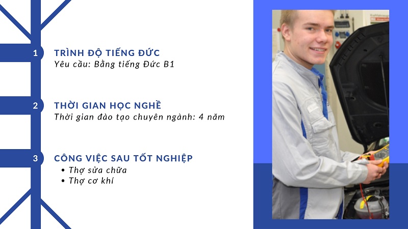 Đức là một trong những nước hàng đầu thế giới về giáo dục nghề. Các trường đào tạo nghề ở Đức cung cấp chương trình đào tạo chuyên sâu về ngành cơ khí.